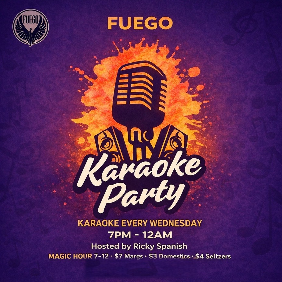 🎤 WEEKLY KARAOKE at FUEGO 🔥🎤 Every Wednesday starting at 7PM The mic is live. The lights are on. The crowd is ready. Whether you’re a shower-singer, a stage regular, or just here to hype your friends — this is your night. 🍸 Drink Specials 🎶 All your friends 🔥 Classic FUEGO Vibes 368 Central Ave, Dover NH Starts at 7PM. Get here early to lock in your playlist.